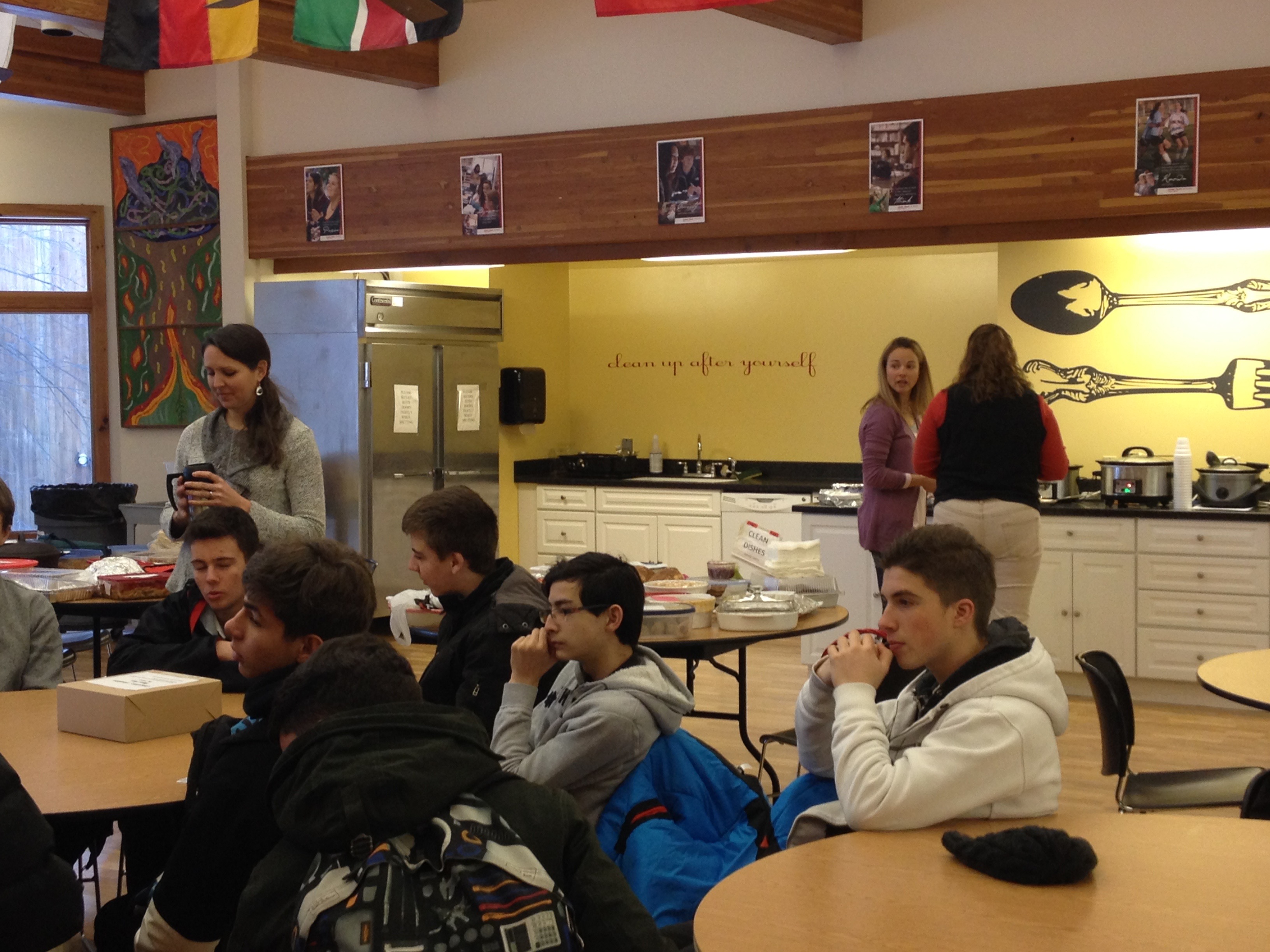Repas dans le réfectoire qui deviendra peut-être la salle de devoirs demain… ou après demain ??? La pression monte !